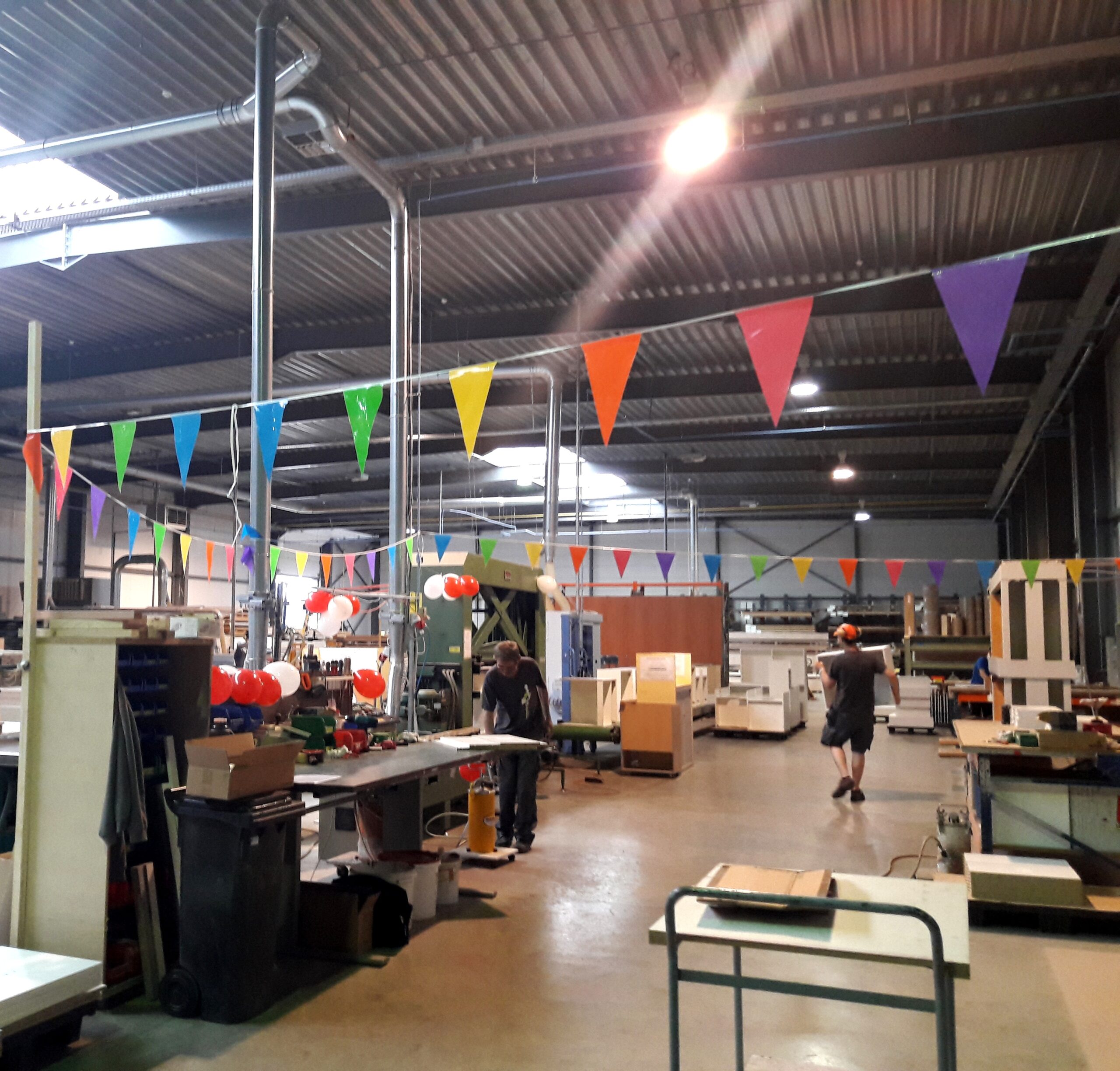Dit konden we niet onopgemerkt laten voorbij gaan en daarom werd ter voorbereiding van zijn afscheidsfeestje zijn werkplaats versierd.
