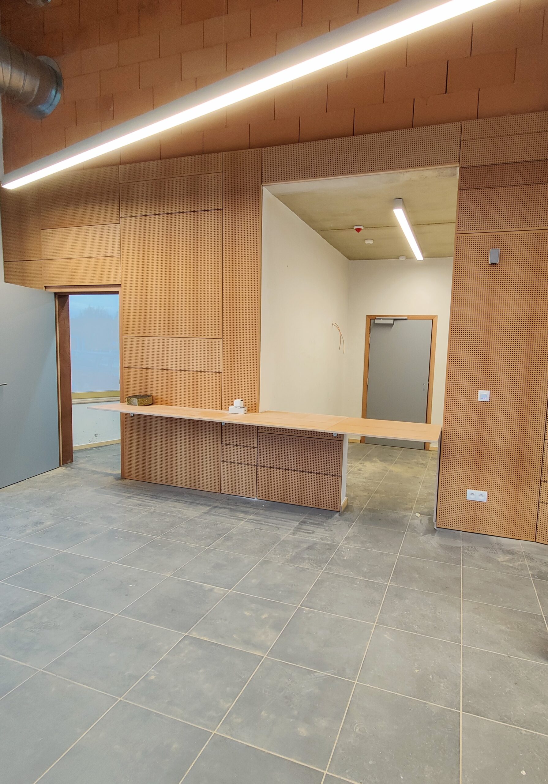 Martine Van Camp VZW heeft in Diest drie nieuwe gebouwen geplaatst een dagcentrum, een atelier en een gebouw met studio’s. In deze drie gebouwen hebben wij het volledige vast meubilair voorzien. Ook hebben we akoestische wanden, binnenramen, venstertabletten en jashaken geplaatst.